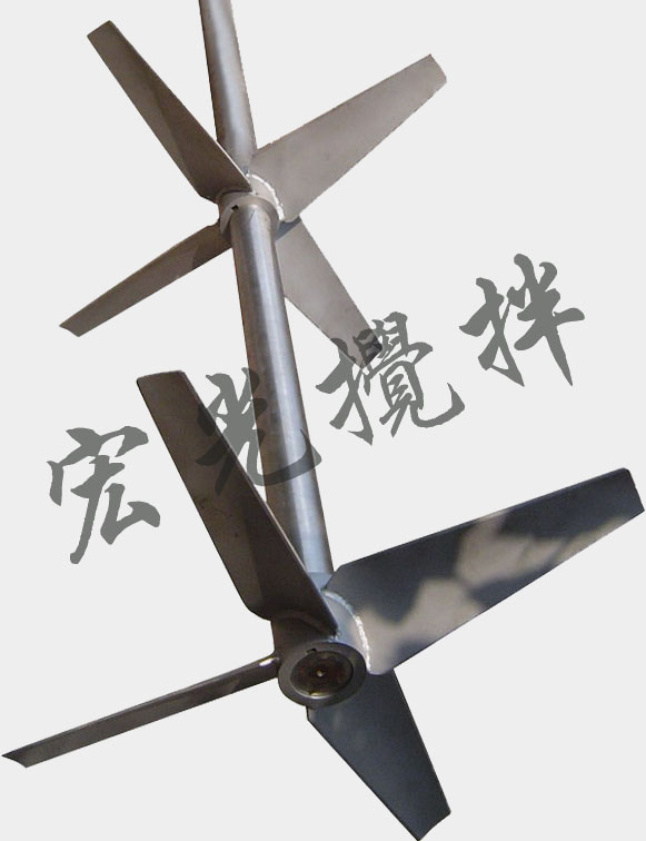 有平槳式和斜槳式兩種。平槳式攪拌器由兩片平直槳葉構(gòu)成。槳葉直徑與高度之比為 4~10,圓周速度為1.5~3m/s,所產(chǎn)生的徑向液流速度小。斜槳式攪拌器的兩葉相反折轉(zhuǎn)45°或60°,因而產(chǎn)生軸向液流。槳式攪拌器結(jié)構(gòu)簡(jiǎn)單,常用于低粘度液體的混合以及固體微粒的溶解和懸浮。